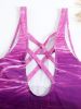 Home > Ombre Purple Color Criss Cross Lace Up Back High Cut Tummy Control One Piece Swimsuit, Women's Swimwear